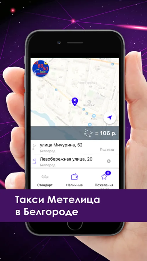 Приложение Такси Метелица - удобный и быстрый способ заказа такси в Белгороде. Всего пару тапов по экрану и автомобиль уже едет к вам.