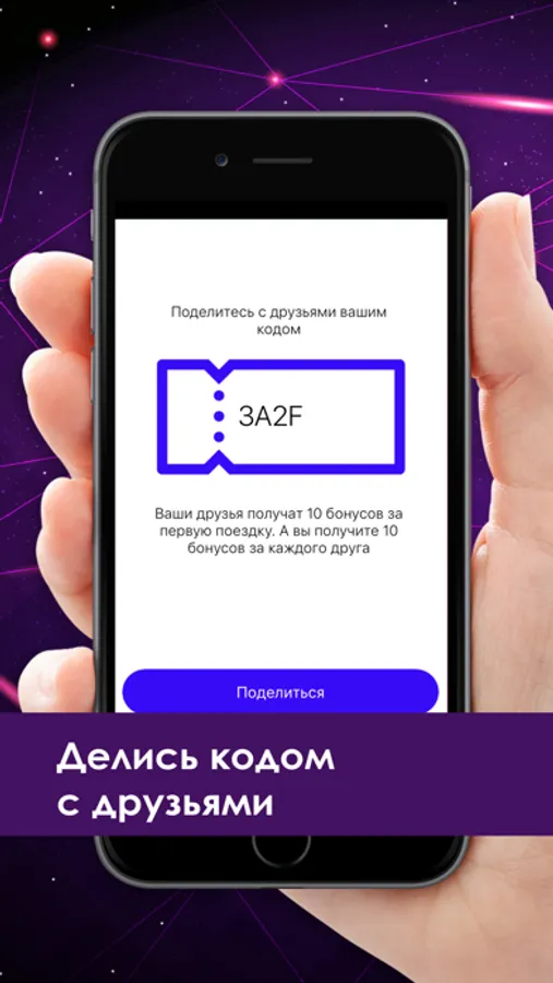 Делитесь вашим личным реферальным кодом с друзьями в социальных сетях, получайте бонусы и используйте их оплаты последующих поездок в Белгороде.
