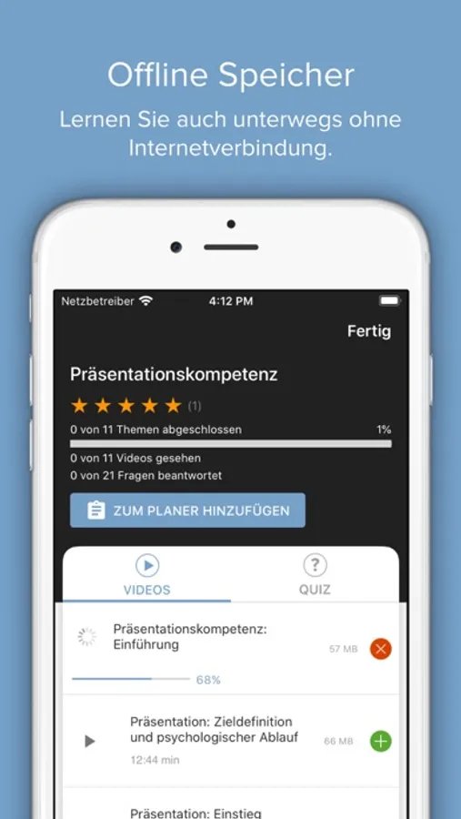 - Audio-only und Offline-Verfügbarkeit der Lernfilme für unterwegs