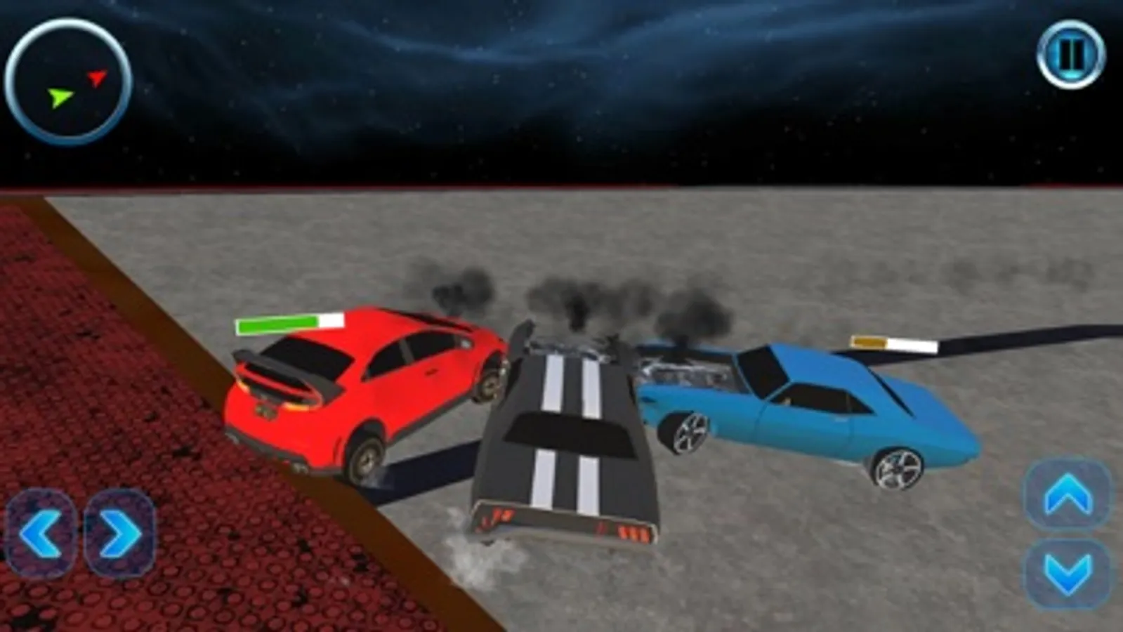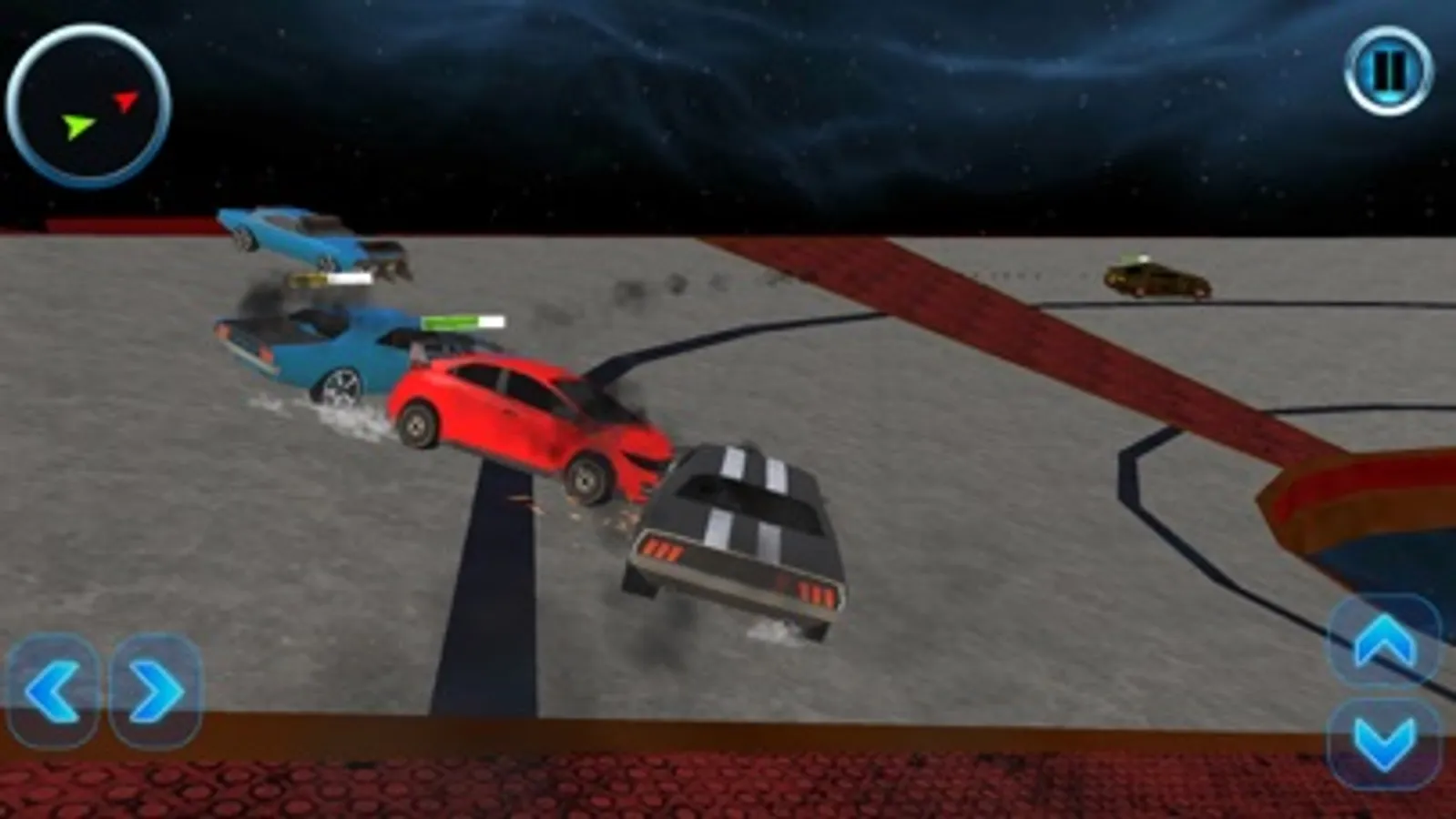 Strap in and buckle up! Xtreme Car Stunts Derby will take you out of this WORLD! Traverse Space on a spiral platform amidst the stars and Milkyway. In this mesmerizing 3D environment, race to the end of time against your opponents! Knock them down, crash, smash, and flip them into a black hole, sucked out of existence! DEMOLISH other vehicles into pieces, and kick them out of this universe!