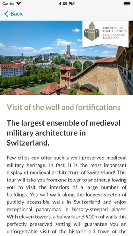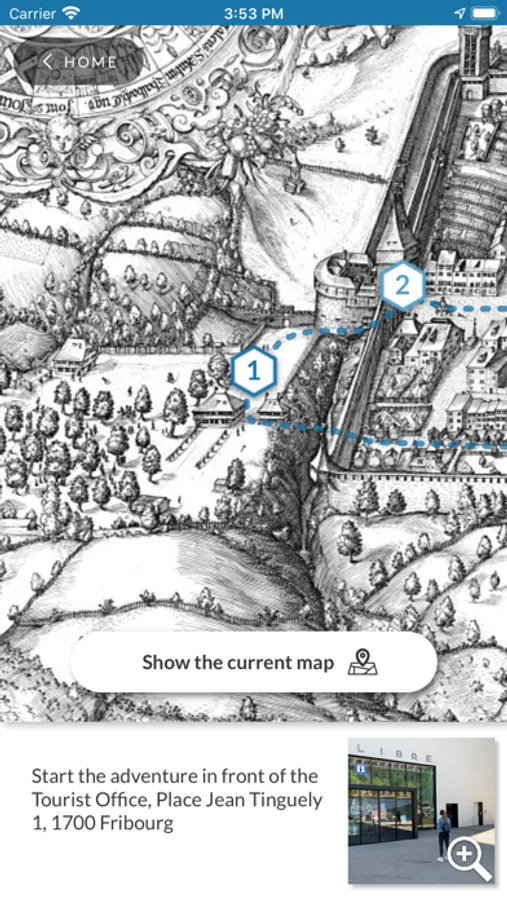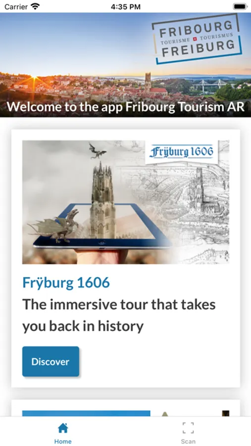 The APP "Fribourg Tourisme AR" is used for tour projects set up by Fribourg Tourism or other partners, and for which augmented reality content is available. Several tours are available on the APP: