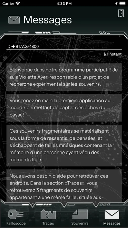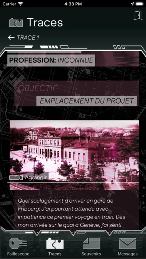 "What is this? I'm picking up something on my detector! It looks like memory threads... in suspension! They are everywhere on Pérolles. The images look old, they must be memories from the beginning of the 20th century. Discover who these memories belong to and, above all, why they are emerging now."