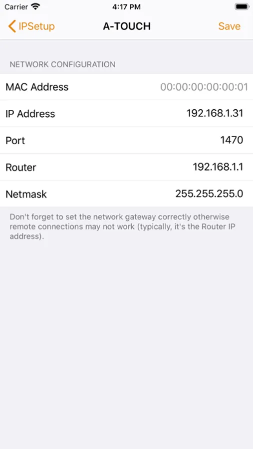 Find and configure A-TOUCH IP gateways on your local network. This application it's a tool to prepare your gateway to work on your local area network. It's similar to the existing desktop application but runs on mobile devices.