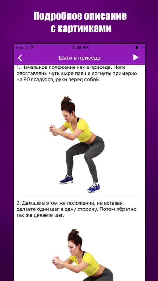 • Подробное пошаговое описание к каждому упражнению с картинками