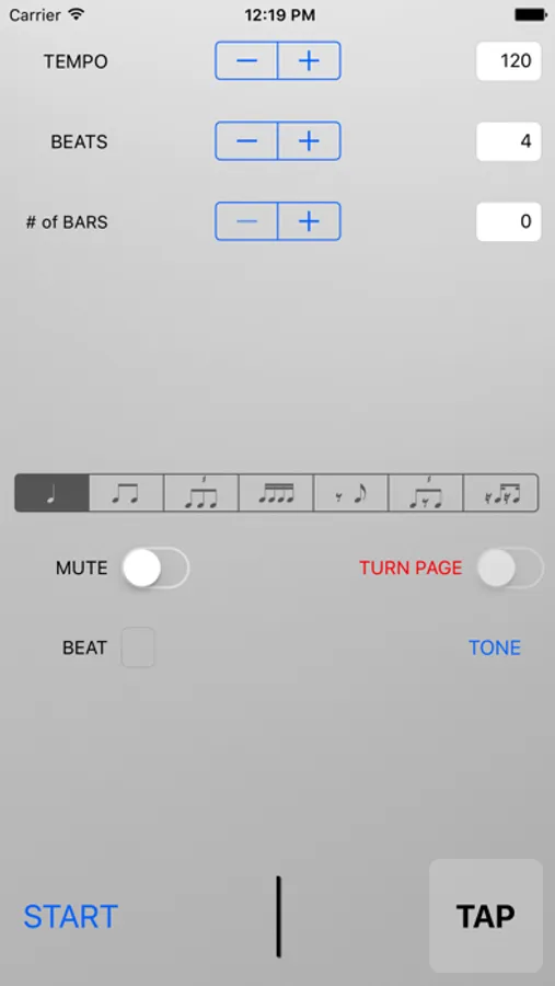 This metronome is a stand alone version of the metronome included with the iGigBook Sheet Music Manager and includes the ability to connect via Bluetooth to a tablet using iGigBook Sheet Music Manager and turn a page after a specified number of measures have elapsed.