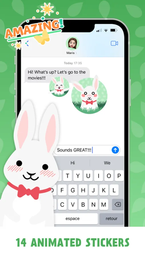 Make your wishes and conversation cuter with these Moji Bunny Stickers. You can peel and stick stickers on your messages to make communicating with your friends and family way more fun. Consider them like your new best friends for helping you to express all your «feels» when texting.