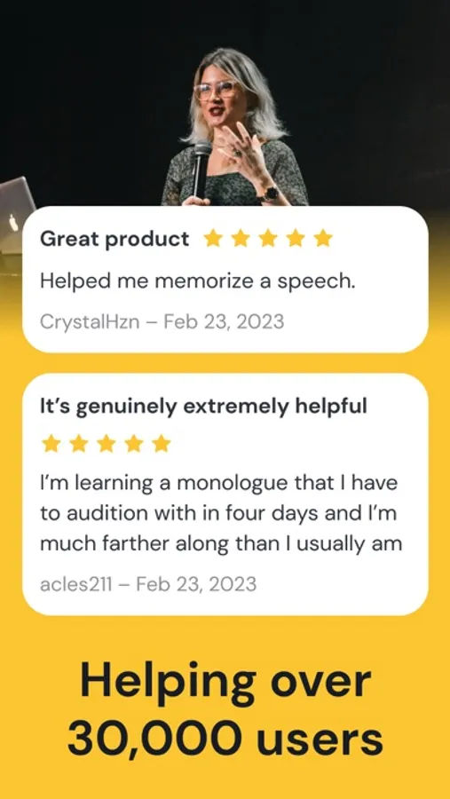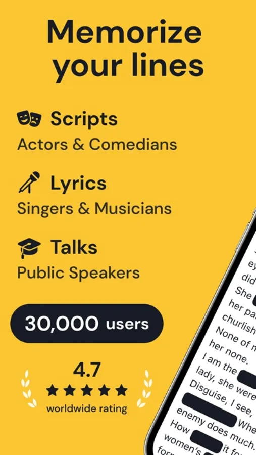• Actors & comedians: focus on your own lines only: other lines will be ignored (check the video tutorial inside the app to learn more)