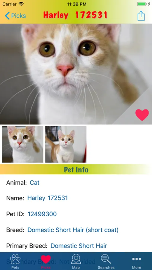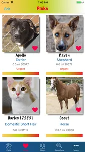 • Save your Pet Picks by clicking the heart on their profile picture. Your Picks are stored in one convenient place for you to refer to as needed.