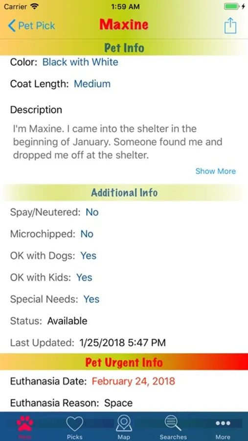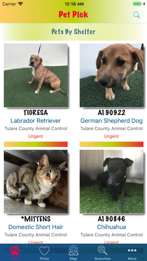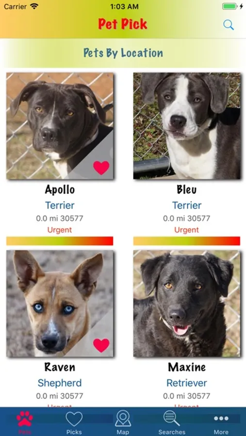 • As an added feature, use the map to get an idea of where your Pet Picks and Urgent pets are located.