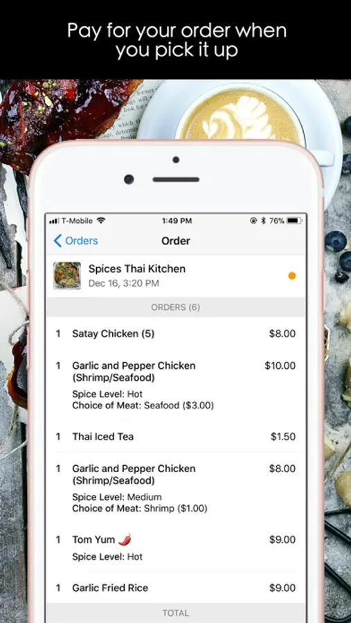 Order from your favorite restaurants through a visual and organized menu with photos and detailed descriptions. Pick up at your own convenience and enjoy your food served hot and fresh.