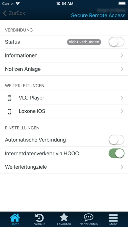 The HOOC Client for iOS - as a part of the HOOC Solution - enables you to connect to the Services configured in the HOOC management portal like for example Secure Remote Access (SERA). Configured installations and their services are shown in the client under your account and can be comfortably used from within the client.