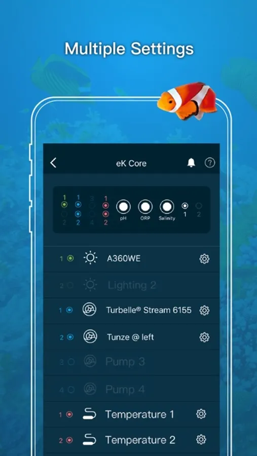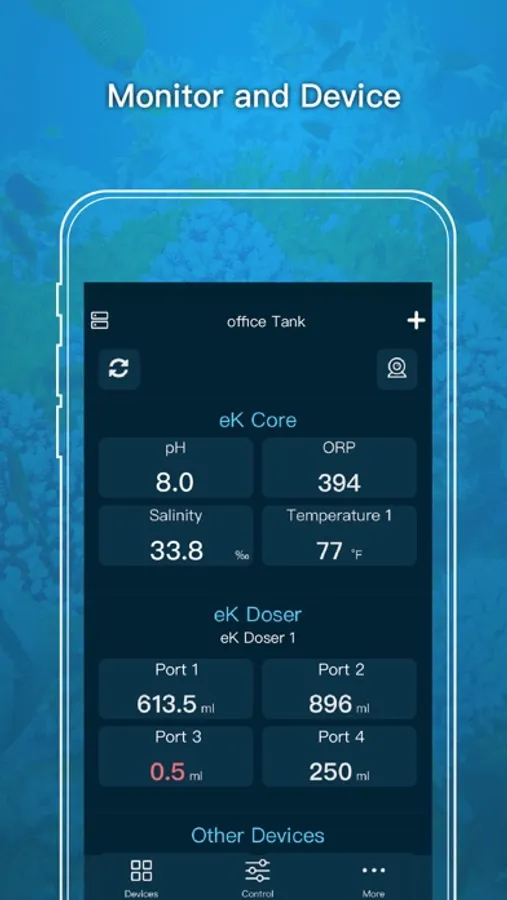 • Monitor tank water parameters in real time (temperature, pH, ORP, Salinity, etc.)