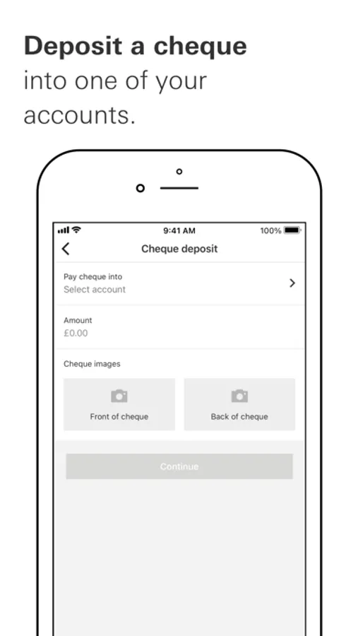 The HSBC UK Mobile Banking app lets you pay in cheques without going to a branch by selecting the account, entering the value then scanning the front and back of the cheque. Please keep any cheques until they show in your account. Daily limits apply.