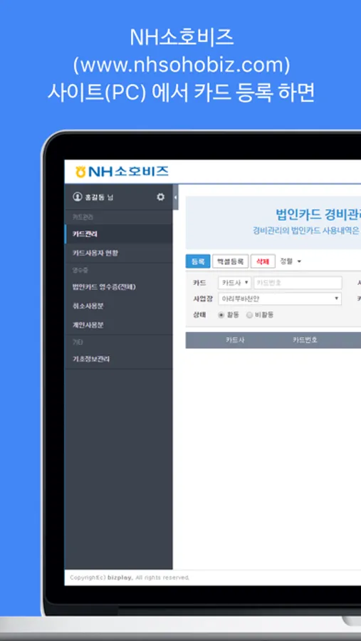 * NH소호비즈 (www.nhsohobiz.com) 사이트(PC)에서 카드 등록을 합니다.