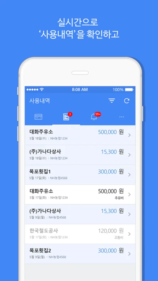 * 실시간으로 사용내역을 조회 할 수 있습니다.