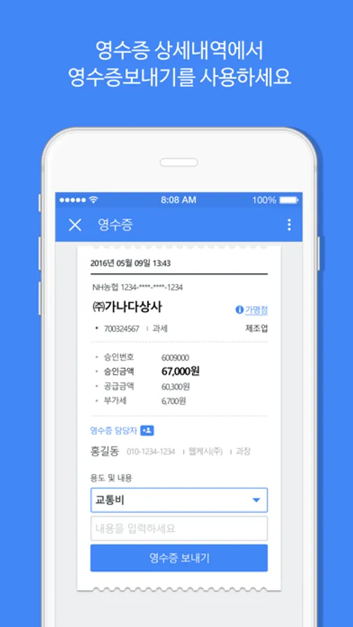 * 영수증 상세내역에서 영수증을 전송할 수 있습니다.