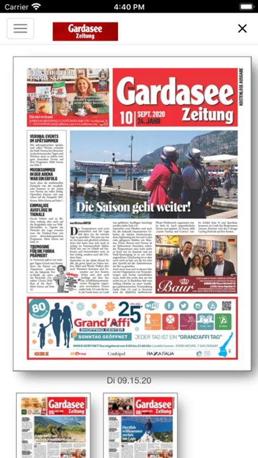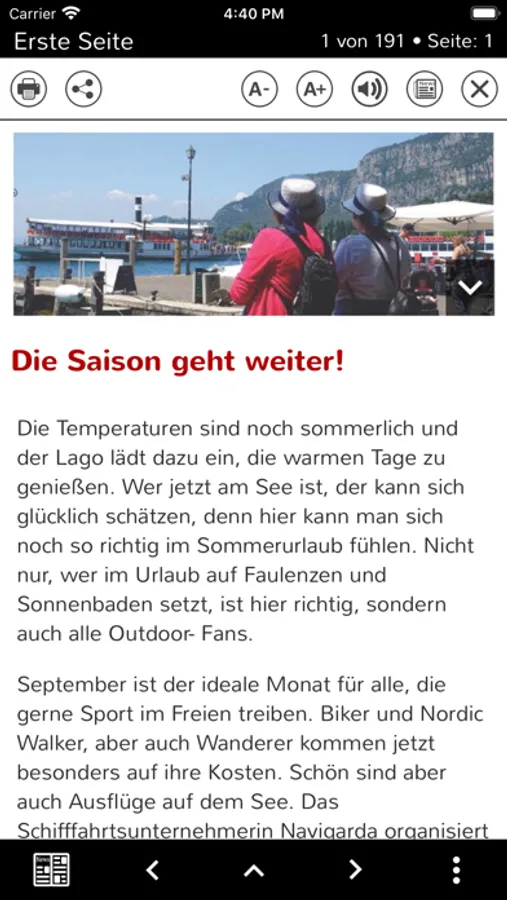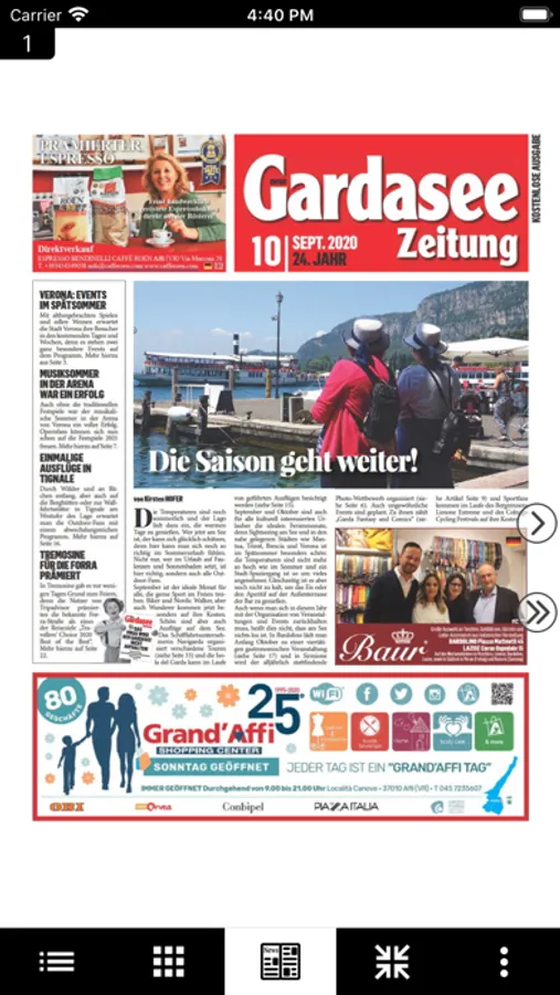 Im Jahr 2017 zieht die GARDASEE ZEITUNG mit der technologischen Entwicklung mit und präsentiert ihre eigene App, durch die das Online-Lesen der beliebtesten Free-Press Zeitung, die am Gardasee verteilt wird, einfacher und benutzerfreundlich wird.