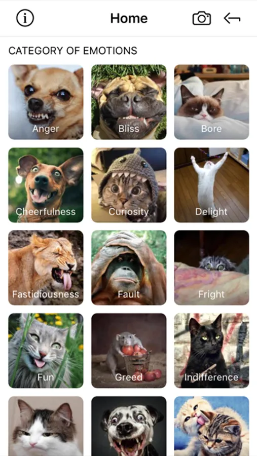 Choosing "WildEmotions" you don’t need to waste of time and think over how express your true feelings with your friends and other people. You even don’t need to worry about that where and how to find a suitable picture for yourself in a wide range of emotions - the app has already provided you the gallery of sorted animal pictures that cover a great variety of funny, fantastic and even unexpected human emotions.