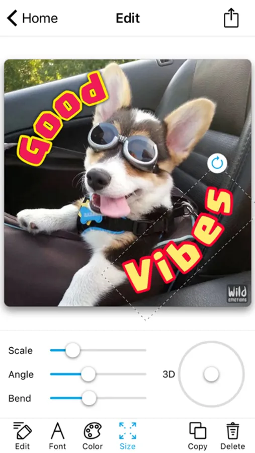 Add a text to the pictures, apply crop and 3D functions, making images lively, lighting up your mood in deep. With a single tap, save your creations in the app history or in your camera roll and share them with your lovers, friends and family, colleagues and other people by Messages, Instagram, Twitter, and Facebook etc.