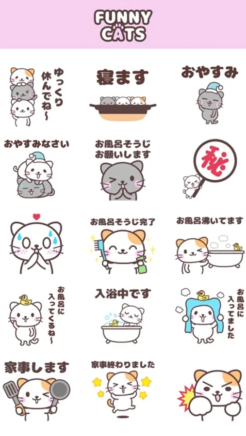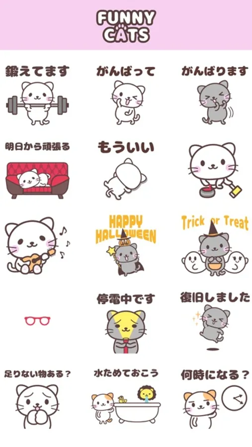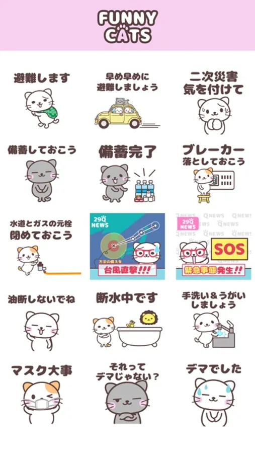 日常で使いやすい言葉と防災関連の言葉が中心の【にゃんこステッカー第1弾・基本編】(全129種類)です。