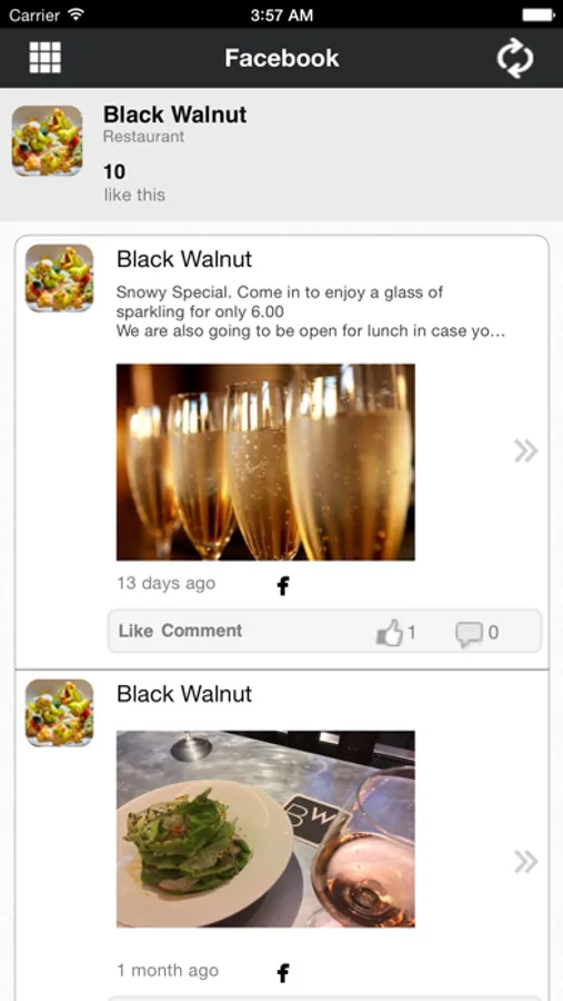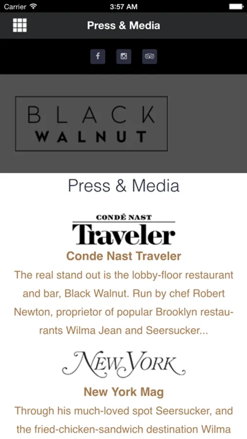 This app allows users to engage with the Black Walnut Restaurant
