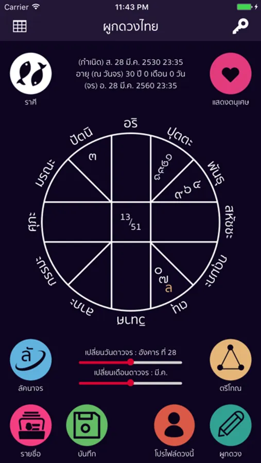 • ผูกดวงตามหลักโหราศาสตร์ไทย (คำนวนให้สำเร็จรูป)
