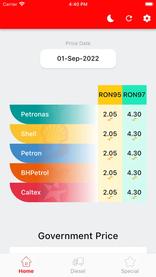 - Has RON95, RON97, Diesel, Euro 5 Diesel prices. More will be added later