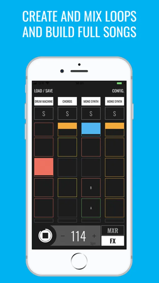 Unique slider controls, long-press & multi-touch controls make this groovebox a perfect live tool: Record/Edit/Start/Stop/Copy/Paste your patterns as you feel like, build and arrange your songs on the fly, apply reverb or delay effects, and let the music live!