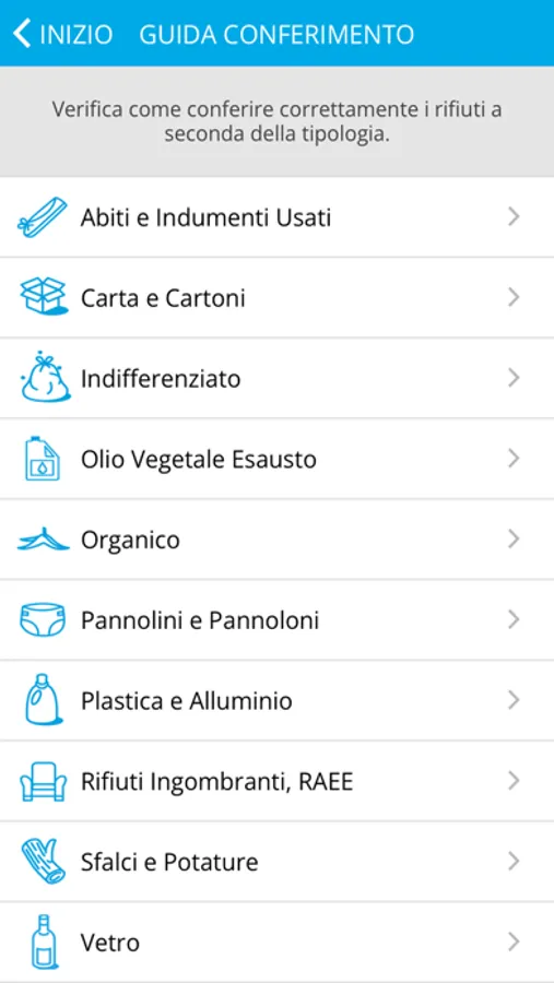 L’app offre all’utente una serie di funzionalità attraverso cui è possibile conoscere ed approfondire le modalità di conferimento dei rifiuti, ma è anche strumento utile per inviare segnalazioni e richieste di ritiro a domicilio, conoscere gli orari e i giorni di apertura dei Centri di Raccolta operativi, personalizzare le notifiche e tante altre funzioni.