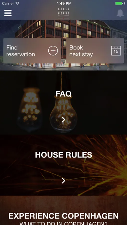 With Steel House Copenhagen’s check-in app, we provide you with an easy way to view your booking and manage your check-in through your device. Make your arrival a little smoother and escape the front desk queue at the hostel by using our app’s check-in function. All you have to do is find and select your reservation, register the number of guests, check in and create your keys, simple as that. Our app will quickly provide you with your check-in confirmation, and you are good to go!