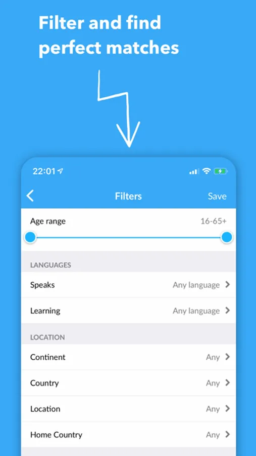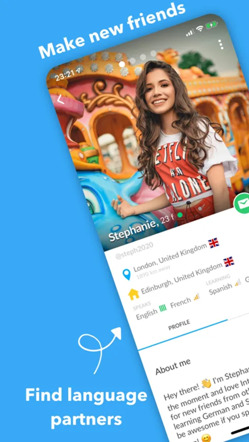 Match with tandem language partners for language exchange or meet up with travelers from other countries who are visiting your area.