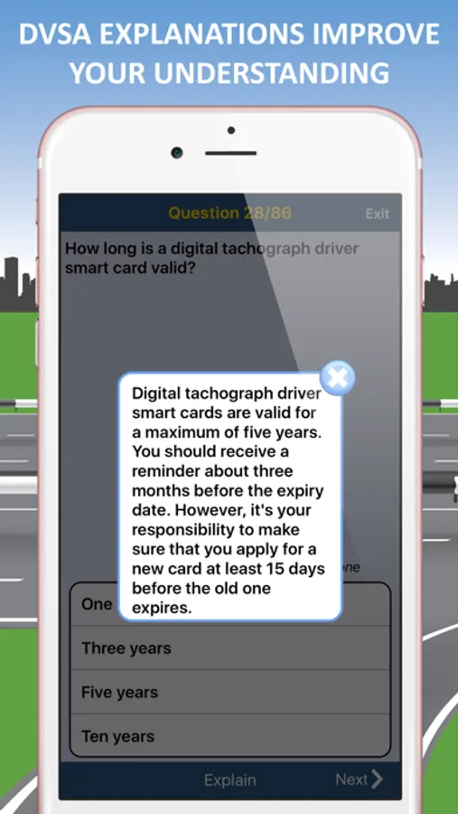Revision tools licensed by the DVSA for the UK HGV (LGV) theory test. Also has practise case studies for Driver CPC part 2.