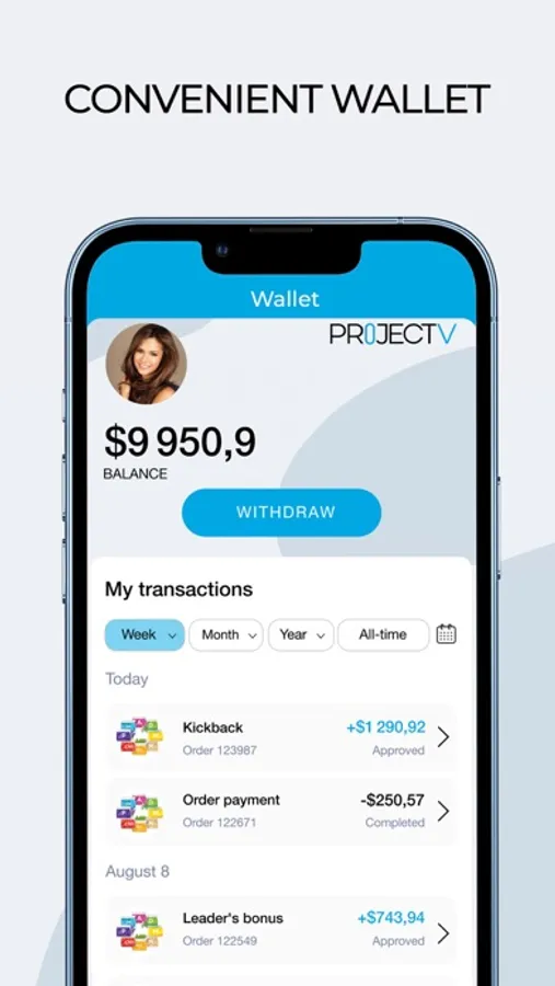 Project V is a beautiful chance to improve your health, increase your wealth, change your lifestyle and achieve the goals you’ve set. Use our app for effective business development, for great purchases and interesting communication!