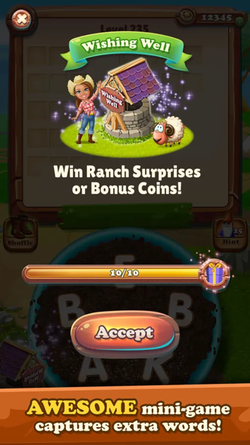 * Wishing Well for extra words, gets you FREE coins and RANCH goodies