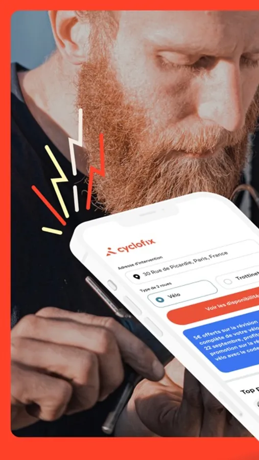 Renseignez votre adresse dans l’app pour savoir si elle est couverte par les réparateurs du réseau Cyclofix.