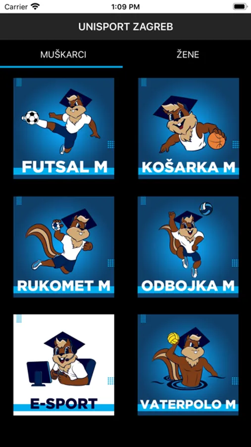 - Momčadi - pregled svih momčadi i njihovih igrača, pojedinačno za svaki odabrani sport