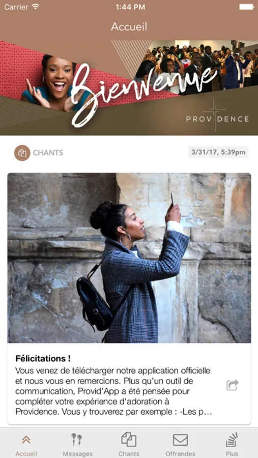 Bienvenue sur l'application officielle de l'église Providence située en Île de France.