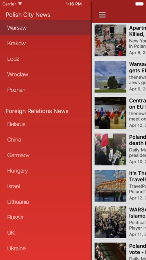 Poland News in English & Polish Radio at your fingertips, with notifications support! Get the latest breaking Polish News in English including updates on the country's economy, immigrations/refugees situation, sports/football plus much more. Individual news sections dedicated to top cities Warsaw, Krakow, Lodz and others will keep you informed about local news happenings. Enjoy streaming radio stations from Poland that include talk/news/music- please note that while most stations are in Polish, some may be in English occasionally. Stay up-to-date with corporate news from the largest Polish companies including PKN Orlen, PGNiG, Skycash plus others. Poland's foreign relations news with countries such as Belarus, Russia, China and others are also included.