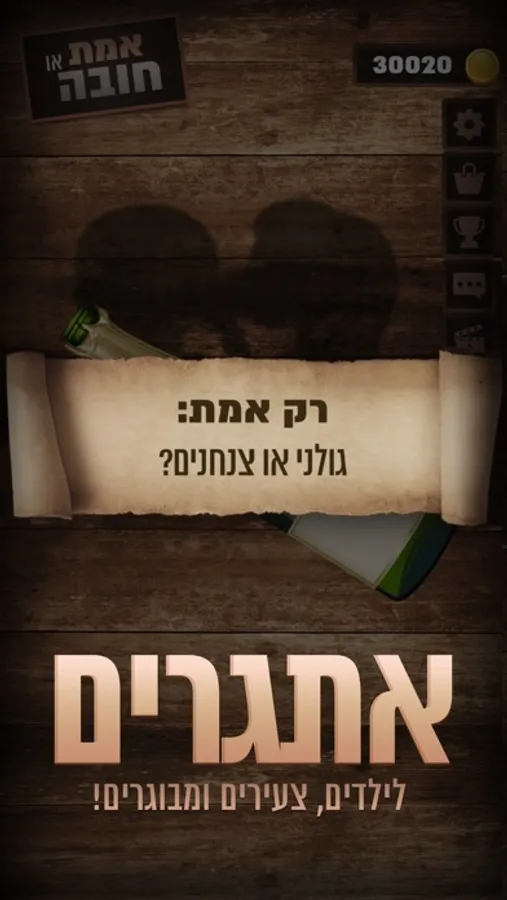 בכל זמן, בכל מקום, ללא תלות באביזרים ובחפצים, הבאנו לכם את המשחק המוכר 'אמת או חובה'