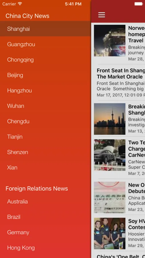 Breaking Chinese News in English at your fingertips, with notifications support! Get the latest China News Today including updates on its economy, relations with US/Donald Trump plus other countries, technology, military and much more. Individual news sections dedicated to top cities Shanghai, Guangzhou, Chongqing, Beijing plus others will keep you informed about local news happenings. Stay up-to-date with corporate news from the largest Chinese companies including Sinopec, ICBC, China Mobile, Alibaba and others.