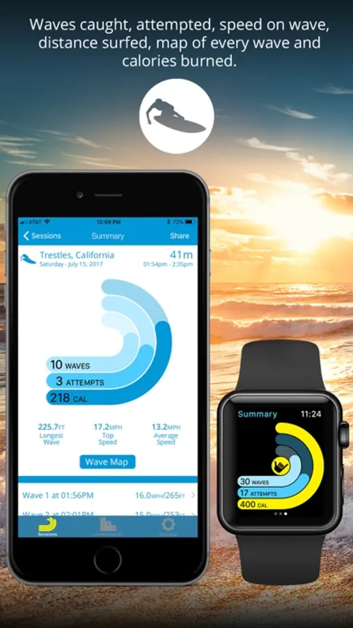 - Review your session in the iOS app with maps of all your waves.