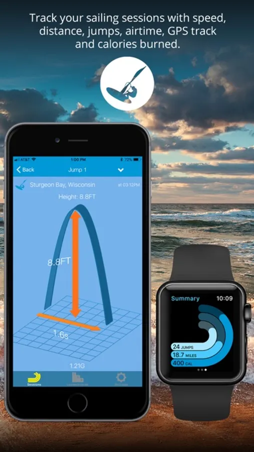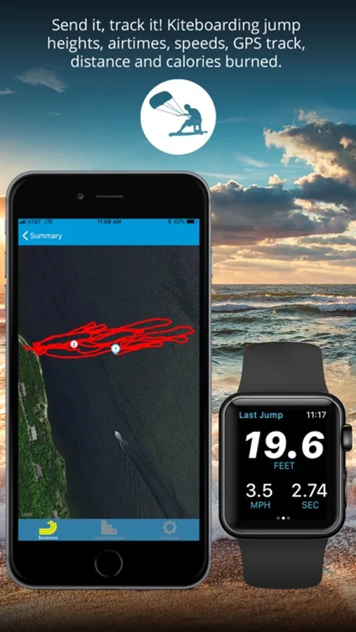 For kite and windsurf, Sessions monitors your speed, altitude, location and more. Jump as high as you can and capture jump heights and airtimes. Ride as fast as you can and Sessions tracks your speeds, travel distance and GPS pathway.