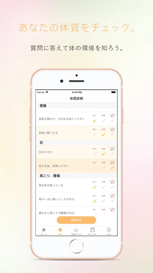 100個の質問に回答して、あなたの体質をチェック。