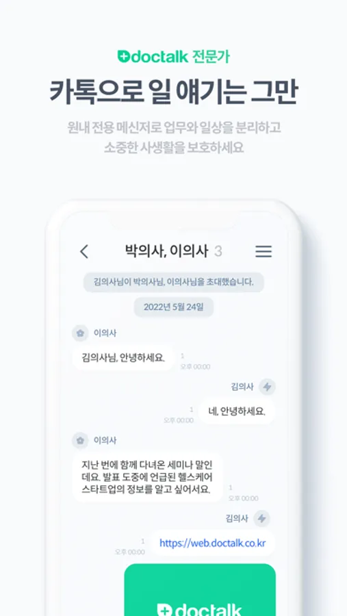 [지워지지 않는 대화 기록] ‘닥톡’에 올린 내용은 카카오톡 등 일반 메신저와 달리 유효기간 없이 언제, 어디서나 확인할 수 있습니다. 환자와의 상담에서 문제가 발생할 때, 매우 유용합니다.