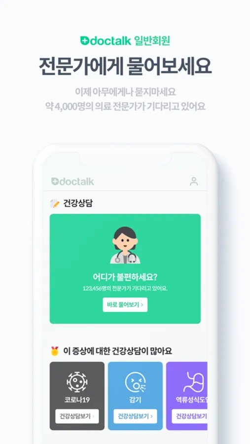 익명의 공개상담, 원하는 진료과 의사를 찾을 수 있어요. 질병, 증상, 의사명, 병원명으로 검색하여 원하는 정보를 찾아요.
