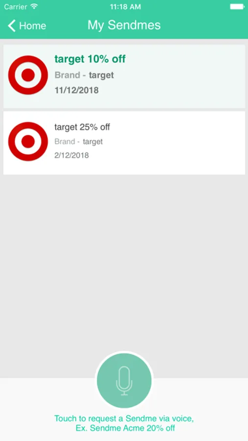All you need to do is open your Sendme app. Then say or type the Sendme code ("Acme Free Burger"). The it's added to your Sendmes list.