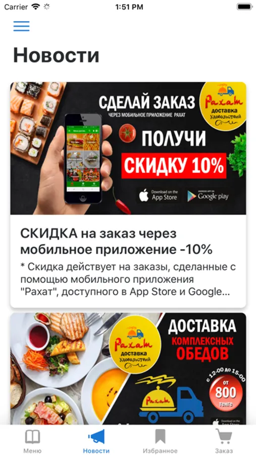 Отправляйте push-уведомления о самых интересных акциях ресторана. Скидки и акции расположены в одном разделе, клиент узнает о них, не выходя из дома.