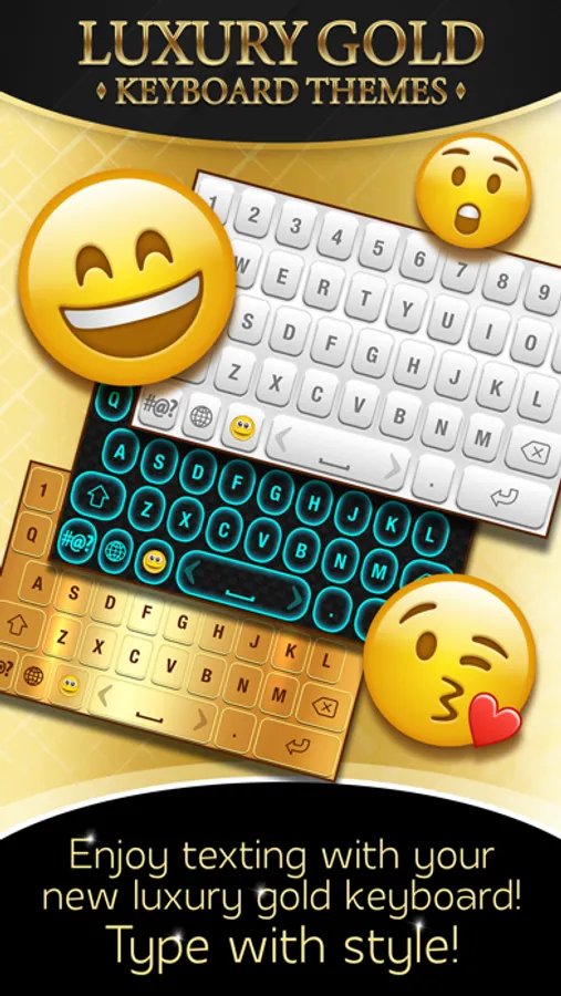 Looking for a new keyboard that will reflect your style? No need to worry – just try out Luxury Gold Keyboard Themes and bring some elegance into your life now! Indulge yourself with cool and eye-catching keypad changer designed especially for those with unique and sophisticated style. Customize your phone by choosing one of stylish neon, golden or simple keyboards backgrounds, amazing key sounds and funny emojis that will turn everyday texting into an extraordinary experience.