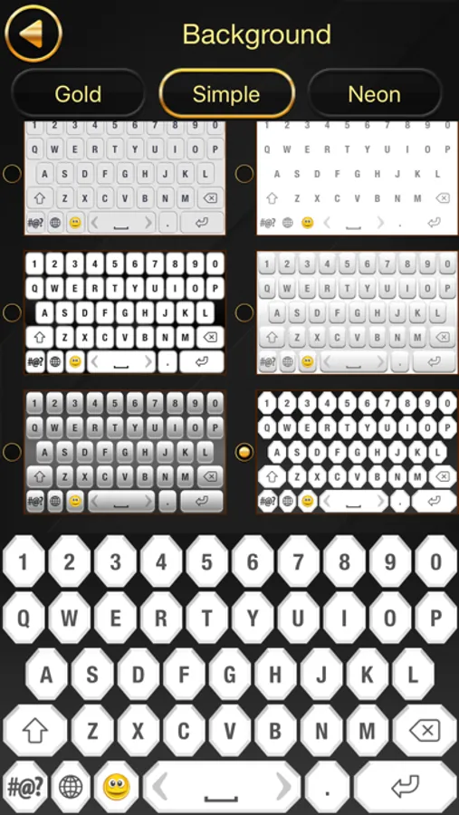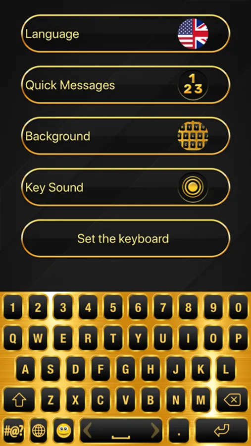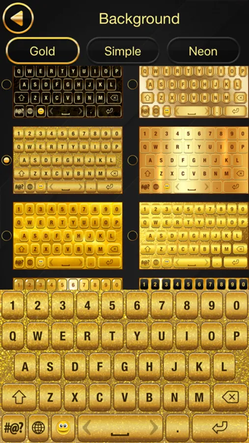 In case your selected keyboard was not activated click Settings button next to Space button on your keyboard, after which you will see a list of installed keyboards along with Luxury Gold Keyboard Themes so you can choose your new keyboard skin and enjoy.