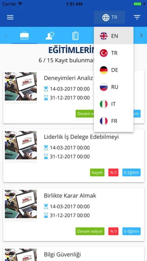- eğitim bilgilerinize ve dökümanlarınıza ulaşabilir;